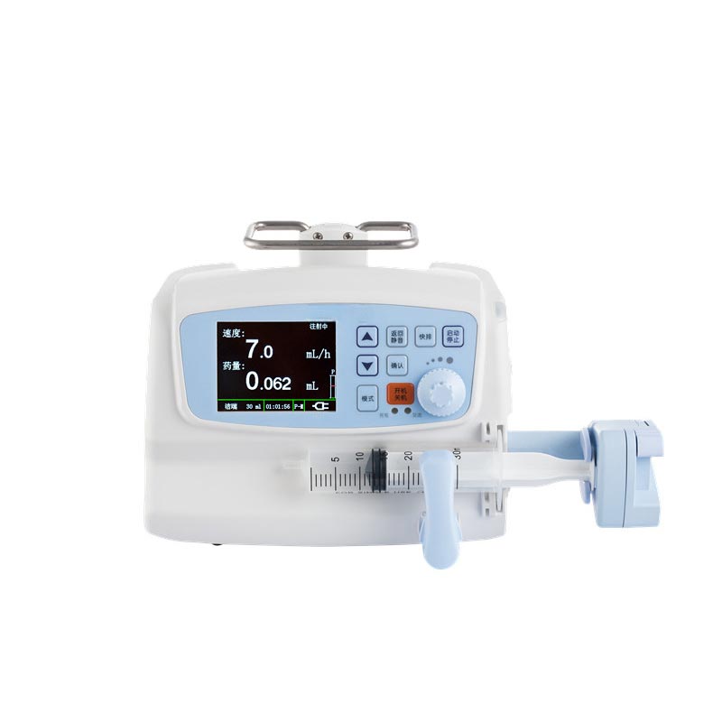 Esta bomba de jeringa de un solo canal HTSY® cuenta con una gran pantalla LCD en color de alta definición, combinada con una interfaz fácil de usar. navegación por iconos y un diseño de botones simple. Admite el cambio de varios idiomas (incluidos chino e inglés) y La configuración de parámetros se completa en un solo paso. Incluso las enfermeras principiantes pueden dominarlo rápidamente. el cuerpo es Diseñado con características a prueba de agua y polvo, lo que lo hace conveniente para la limpieza y desinfección clínica diaria.